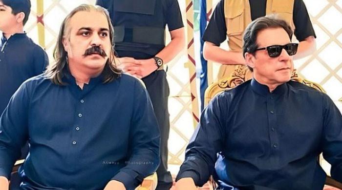 KP CM Ali Amin Gandapur is seated with PTI founder Imran Khan in this photo shared by party. — Instagram/@ptiofficial